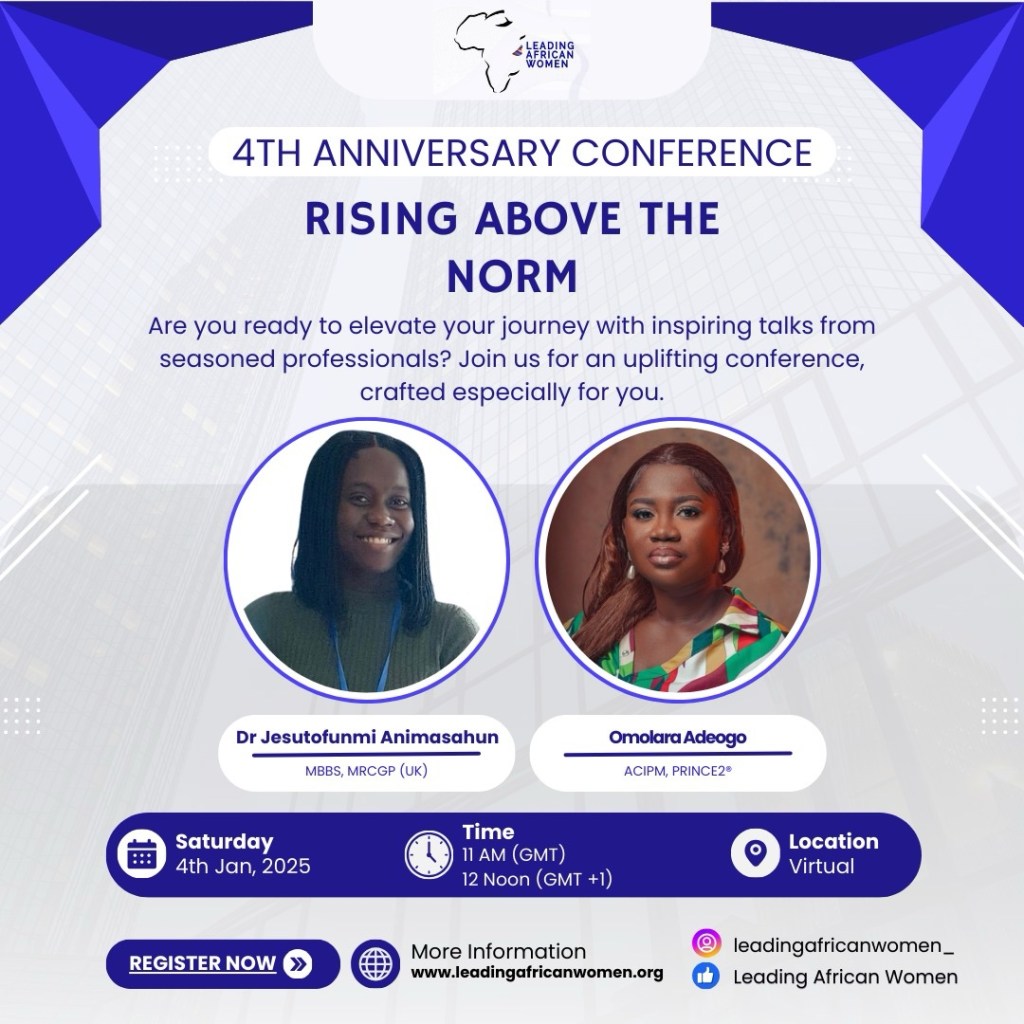 Leading African Women is a platform of noble women of faith where we constantly challenge ourselves to thrive in our communities and spheres of influence. We are confidently utilising our voice to uphold truth and justice. We are intentional about our continuous growth across all spectrum of life. We stand for Truth, Faith and Love for God and humanity.